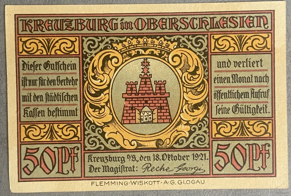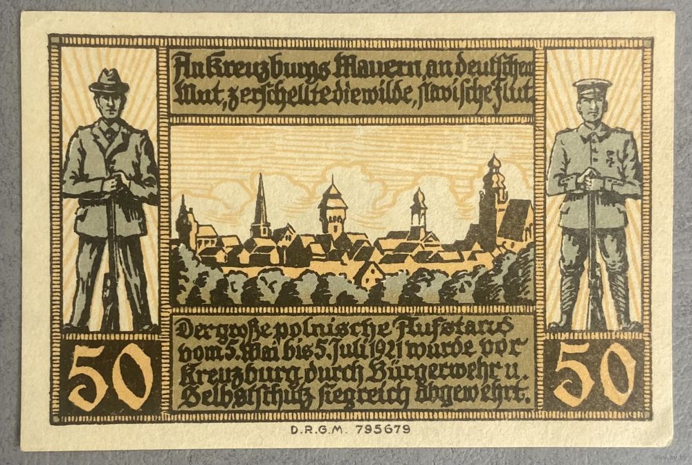 Нотгельд 50 пфеннигов 1921 год. Кройцбург. Веймарская республика