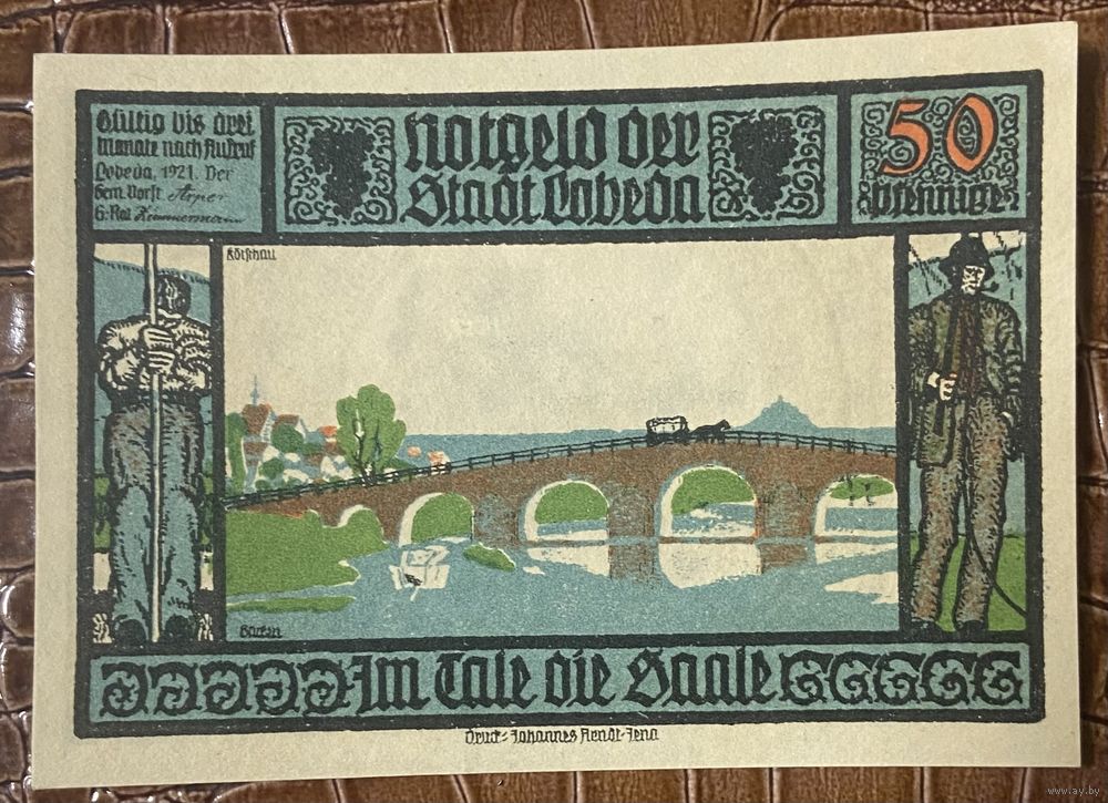 Нотгельд 50 пфеннигов 1921 год. Лобеда. Веймарская республика