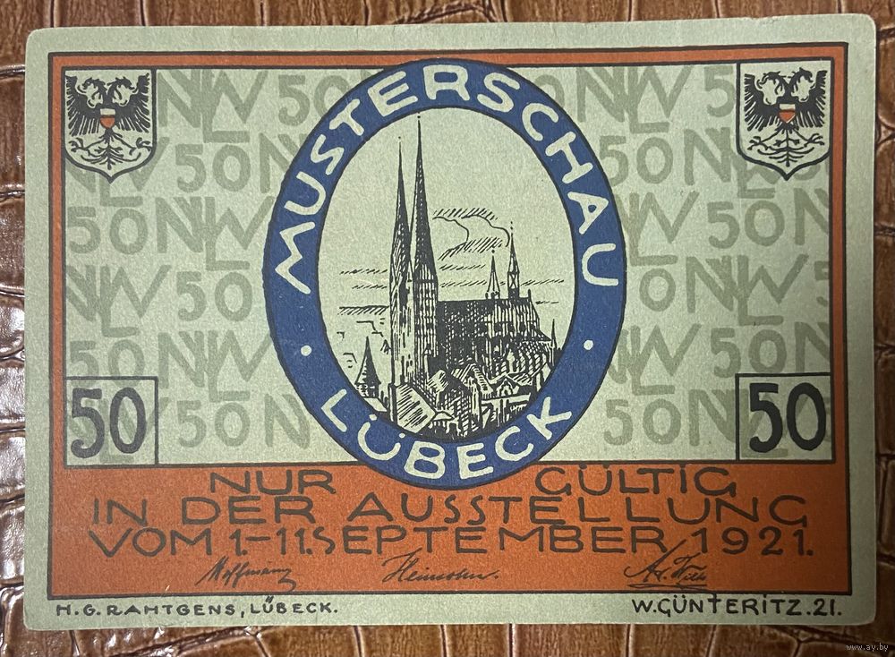 Нотгельд 50 пфеннигов 1921 год. Любек. Веймарская республика
