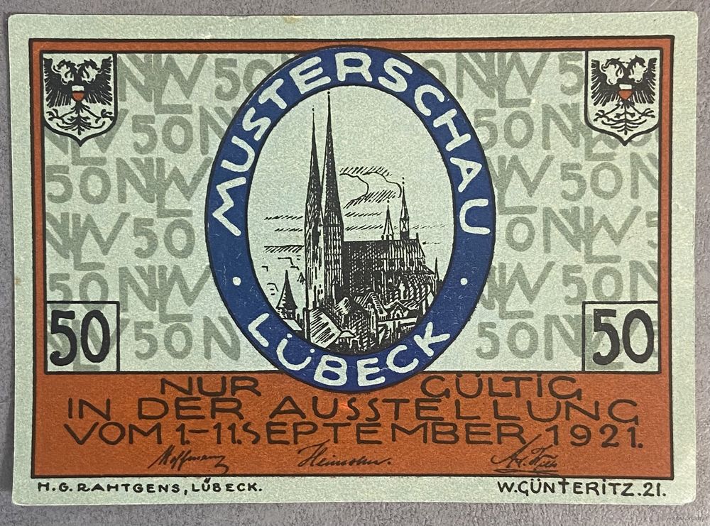 Нотгельд 50 пфеннигов 1921 год. Любек,. Веймарская республика