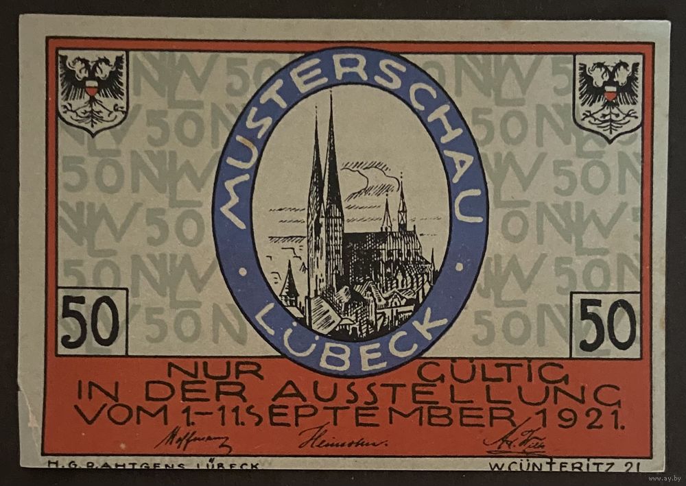 Нотгельд 50 пфеннигов 1921 год. Любек. Веймарская республика