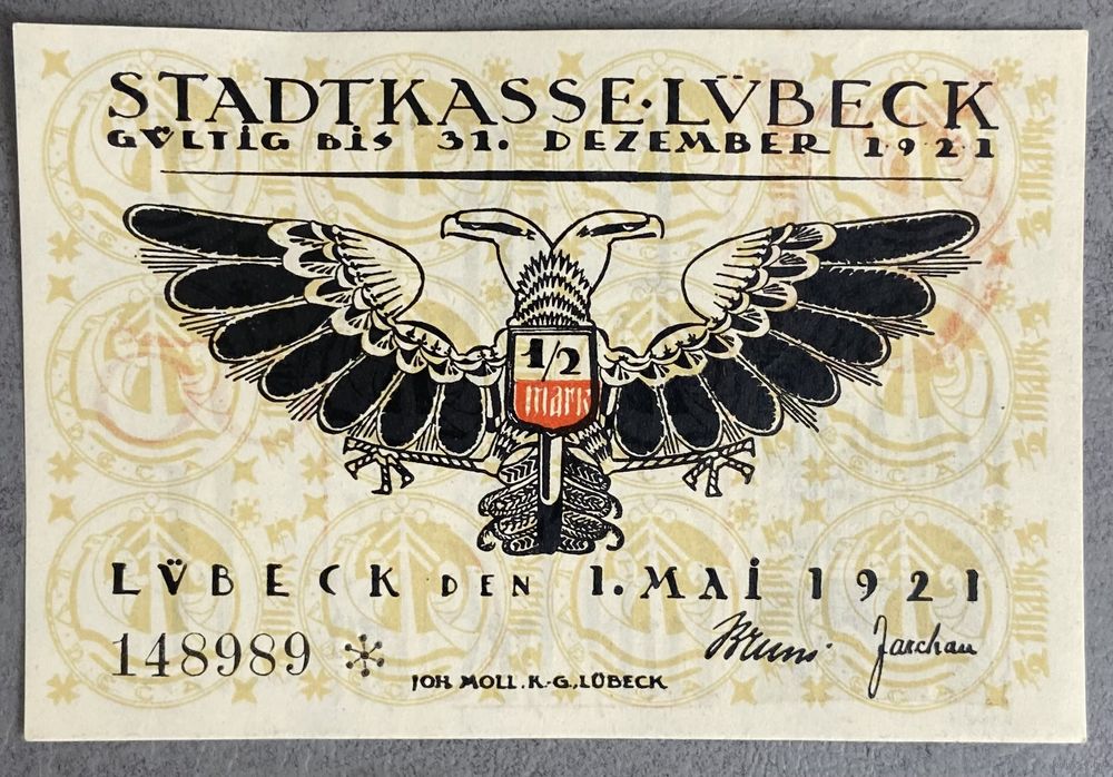 Нотгельд 50 пфеннигов 1921 год. Любек,. Веймарская республика