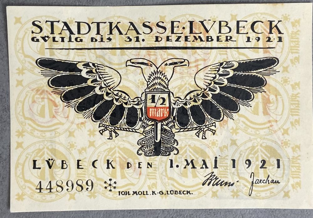 Нотгельд 50 пфеннигов 1921 год. Любек,. Веймарская республика