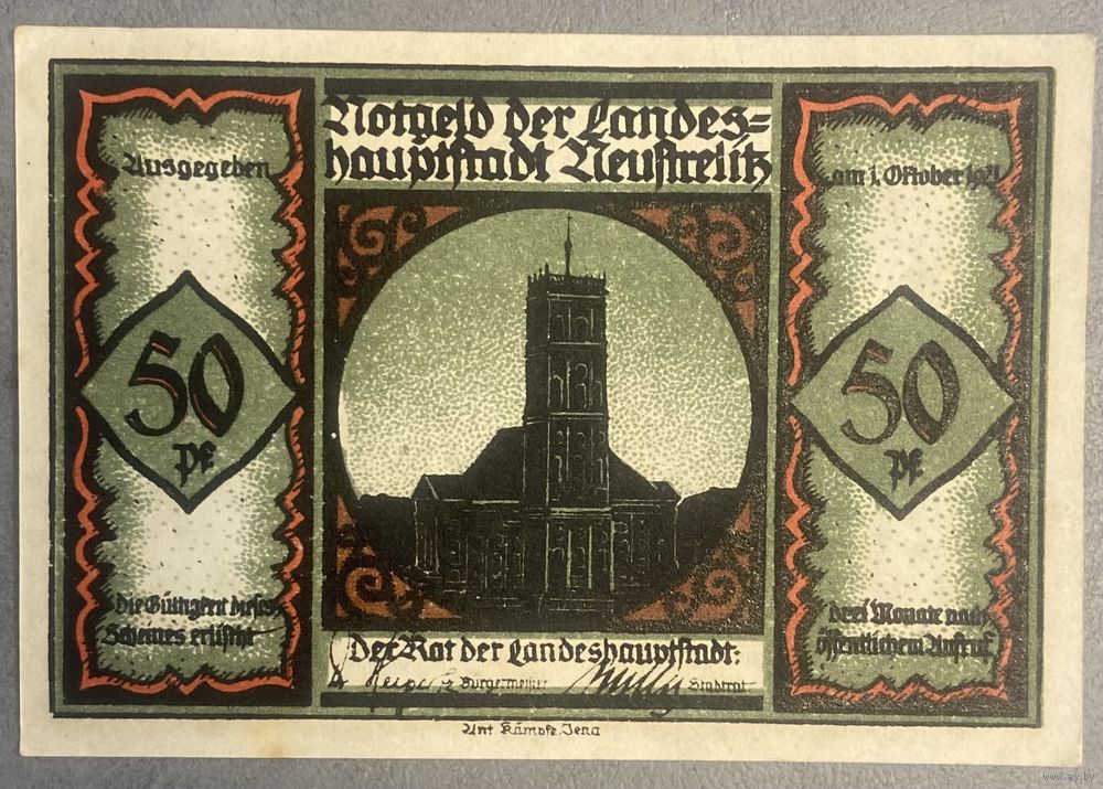 Нотгельд 50 пфеннигов 1921 год. Нойштрелиц,. Веймарская республика
