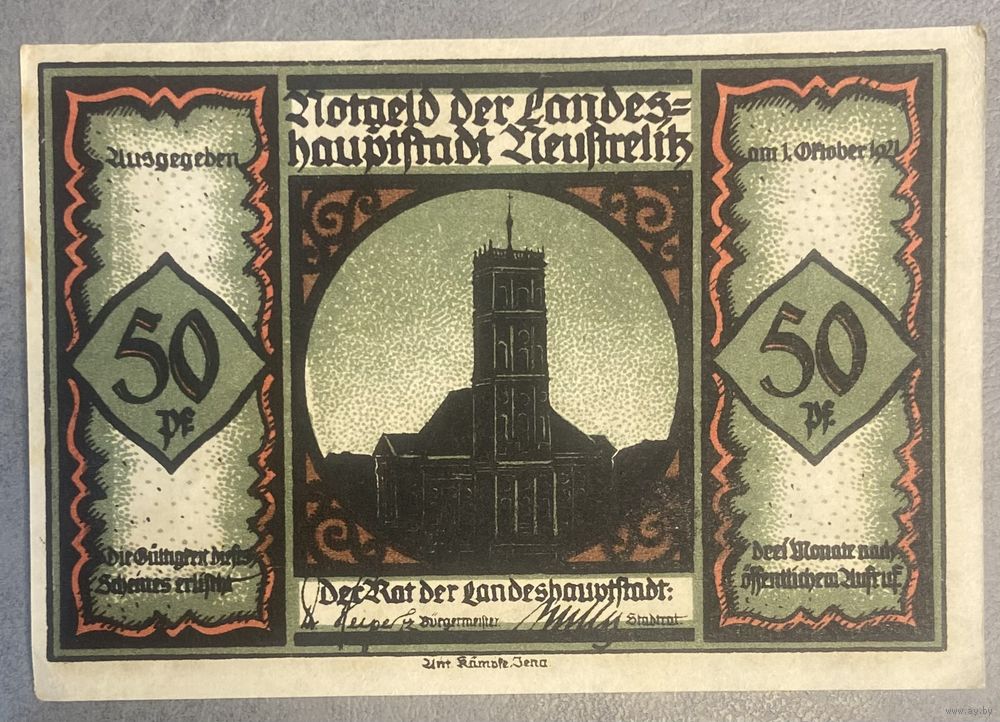 Нотгельд 50 пфеннигов 1921 год. Нойштрелиц,. Веймарская республика