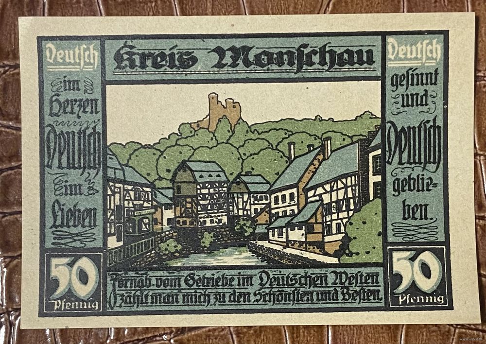 Нотгельд 50 пфеннигов 1921 год. Округ Моншау. Веймарская республика