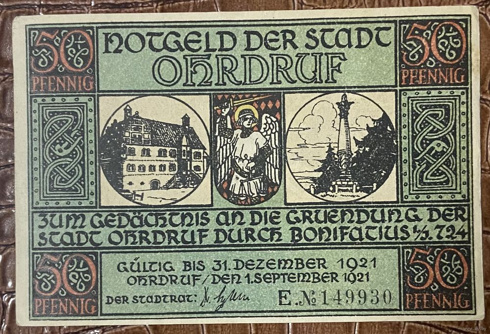 Нотгельд 50 пфеннигов 1921 год. Ордруф,. Веймарская республика
