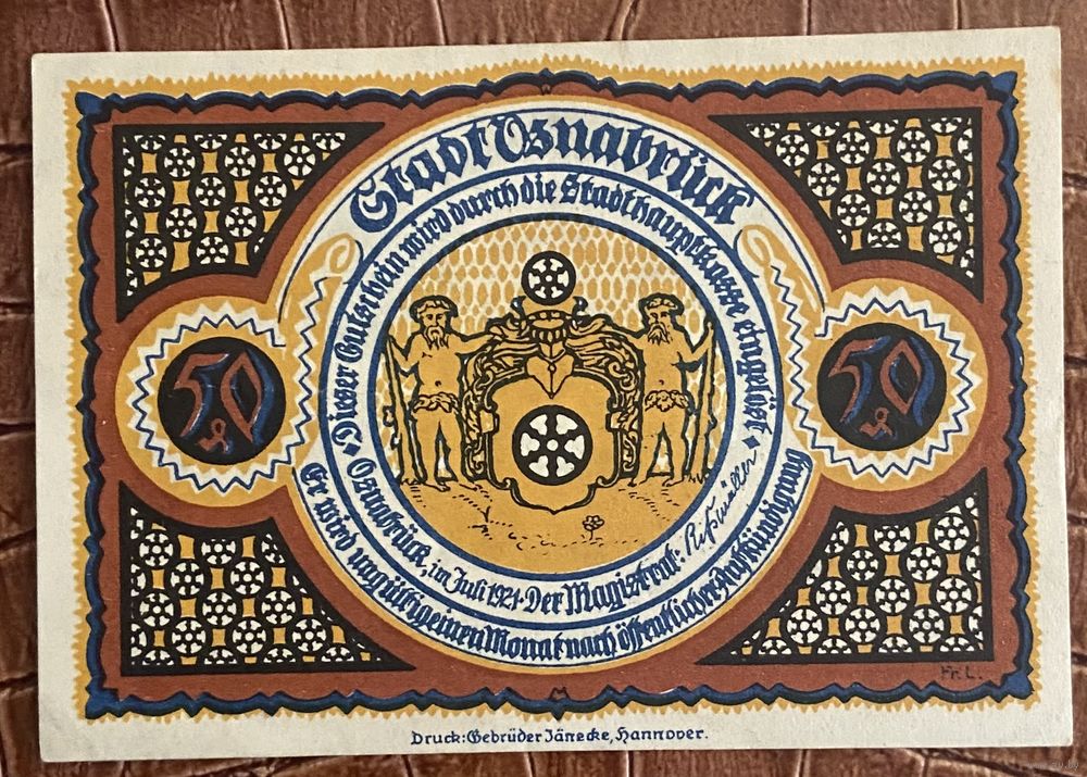 Нотгельд 50 пфеннигов 1921 год. Оснабрюк. Веймарская республика