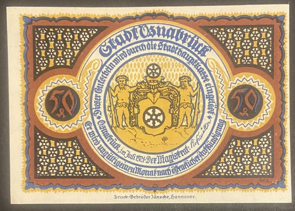 Нотгельд 50 пфеннигов 1921 год. Оснабрюк. Веймарская республика