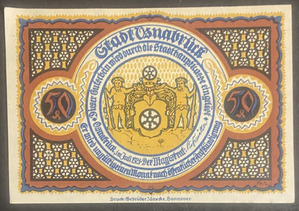 Нотгельд 50 пфеннигов 1921 год. Оснабрюк. Веймарская республика