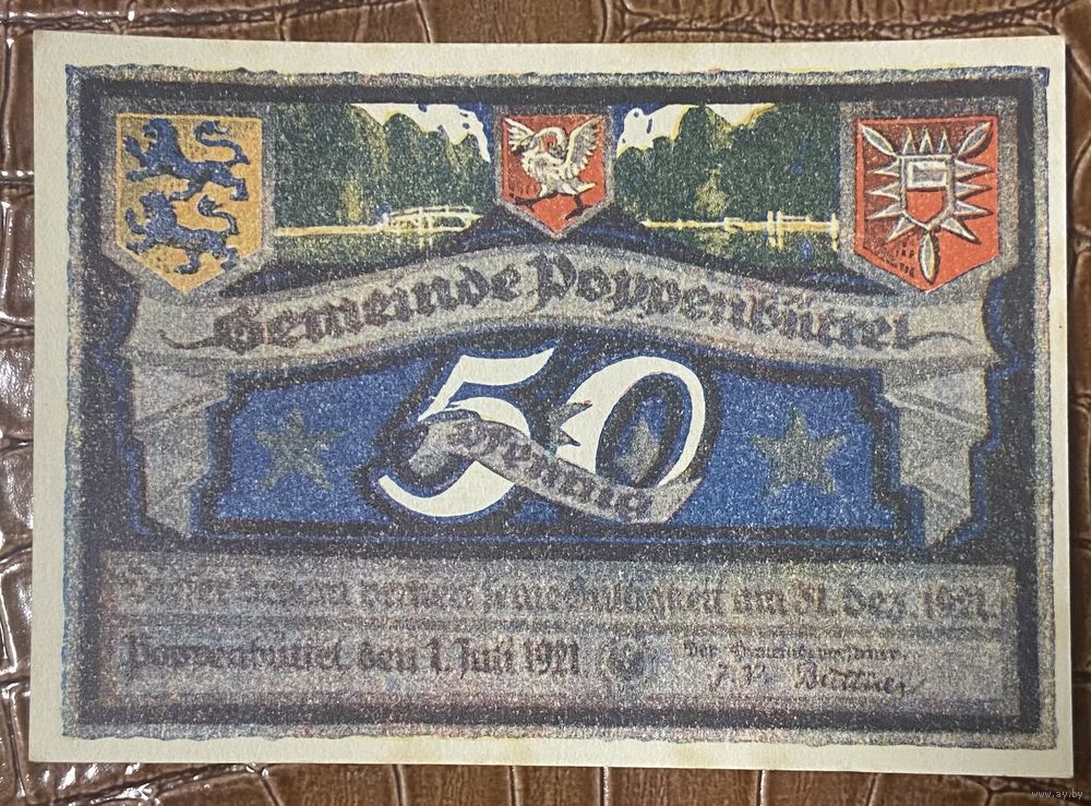 Нотгельд 50 пфеннигов 1921 год. Поппенбюттель. Веймарская республика