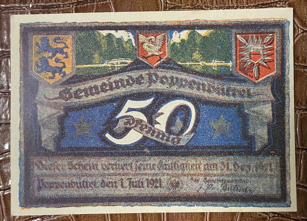 Нотгельд 50 пфеннигов 1921 год. Поппенбюттель. Веймарская республика