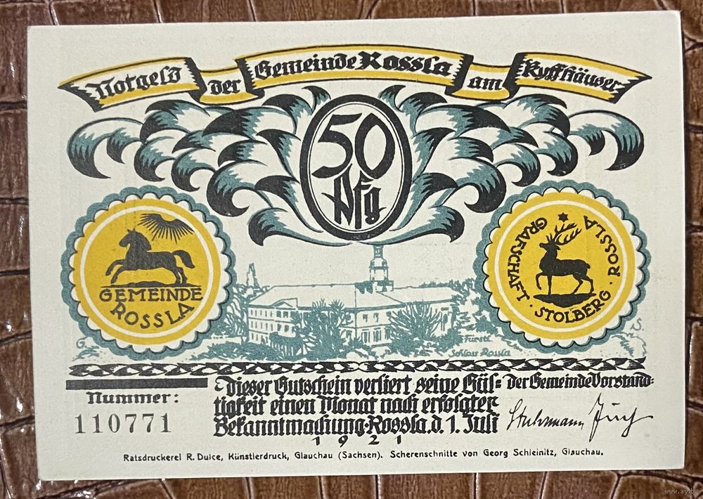 Нотгельд 50 пфеннигов 1921 год. Росла,. Веймарская республика