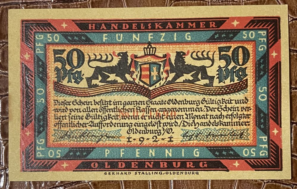 Нотгельд 50 пфеннигов 1921 год. Росла,. Веймарская республика