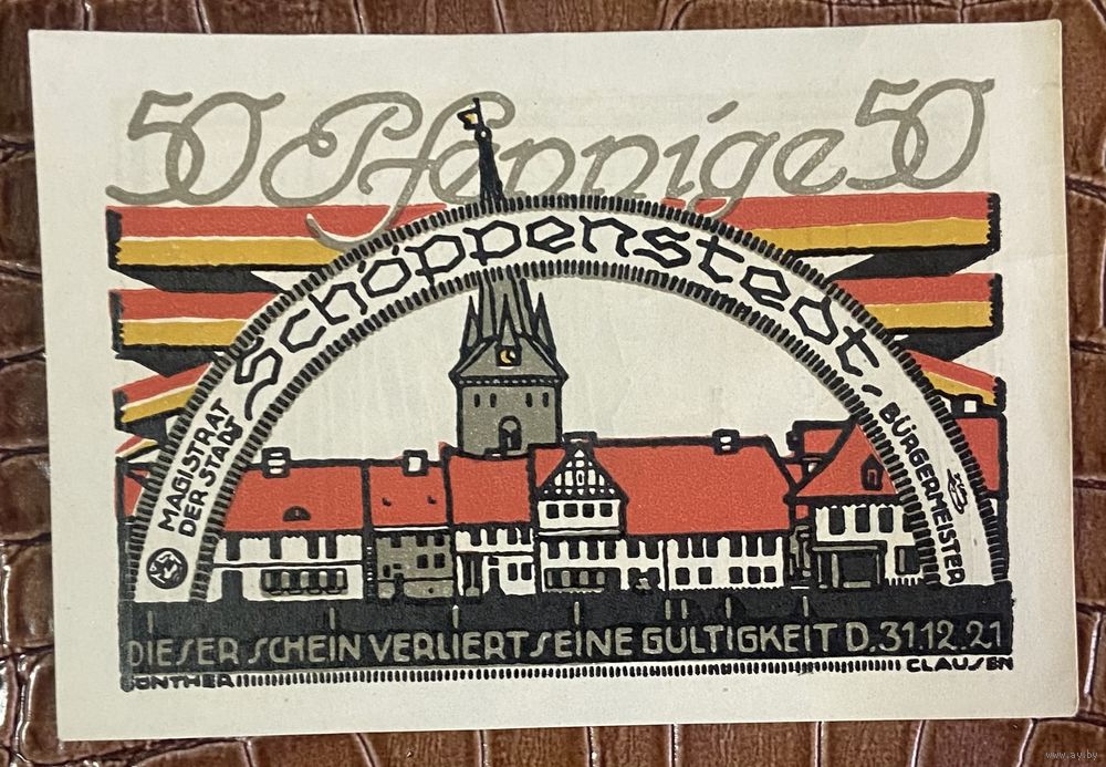 Нотгельд 50 пфеннигов 1921 год. Шёппенштедт,. Веймарская республика