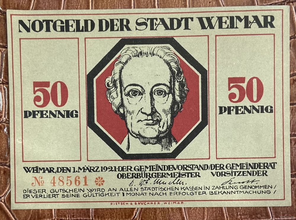 Нотгельд 50 пфеннигов 1921 год. Веймар,. Веймарская республика