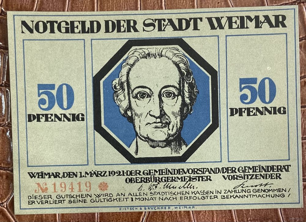 Нотгельд 50 пфеннигов 1921 год. Веймар,. Веймарская республика