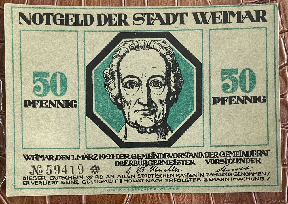 Нотгельд 50 пфеннигов 1921 год. Веймар,. Веймарская республика