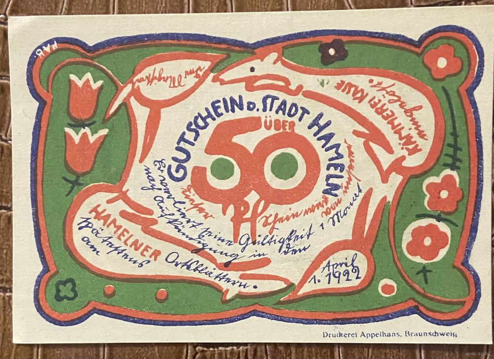 Нотгельд 50 пфеннигов 1922 год. Хамельн. Веймарская республика