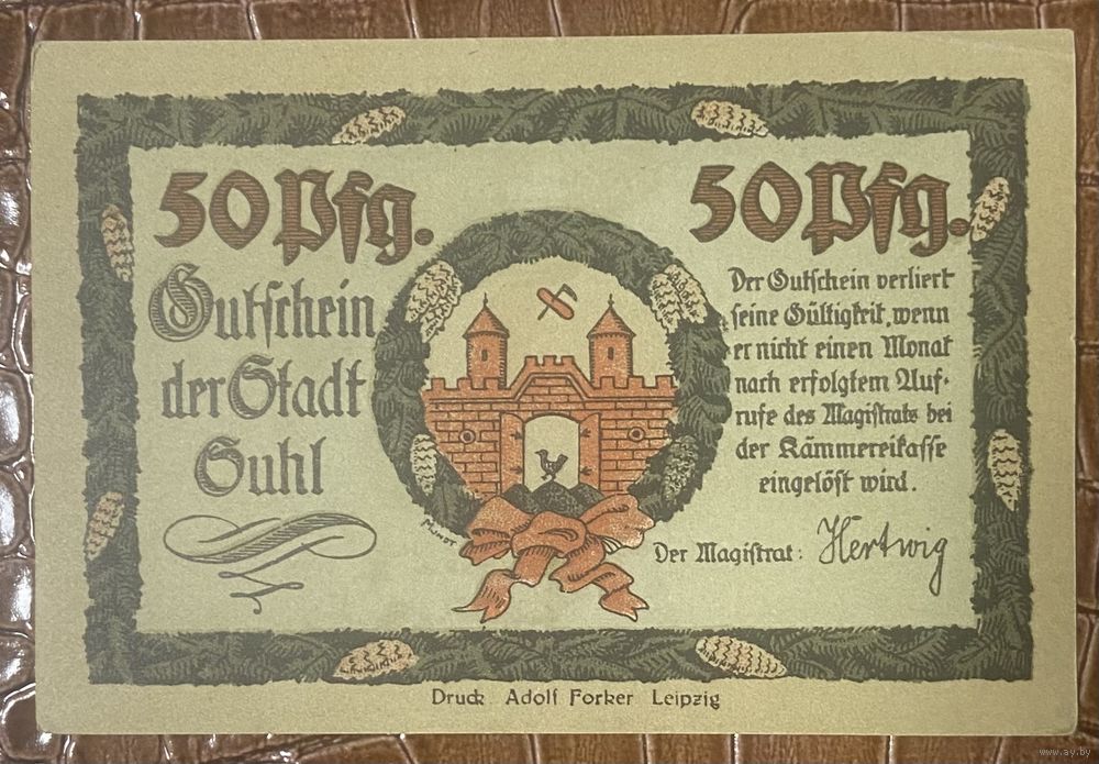 Нотгельд 50 пфеннигов 1922 год. Зуль,. Веймарская республика
