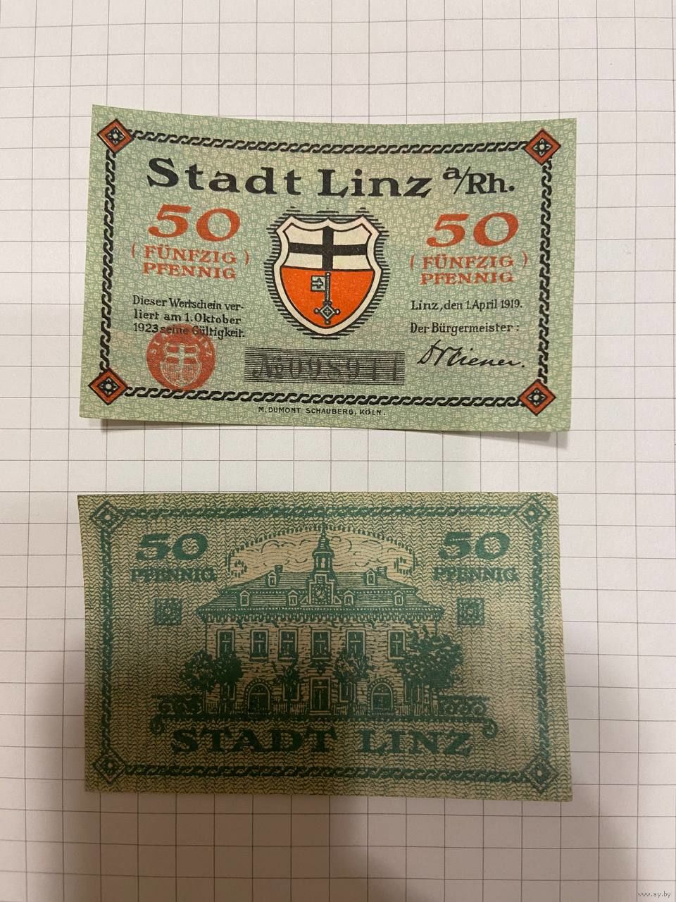 Нотгельд 50 пфеннигов. Германия. Веймарская республика Линц-0201-2