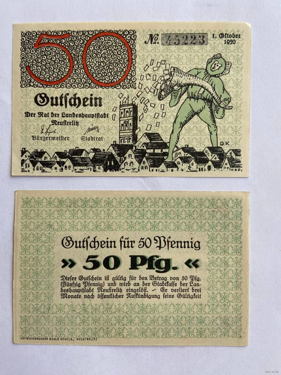 Нотгельд 50 пфеннигов Ньюштрелиц. Веймарская республика - 1602 (2)