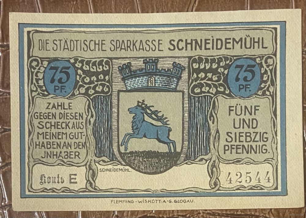 Нотгельд 75 пфеннигов 1920 год. Шнайдемюль,. Веймарская республика