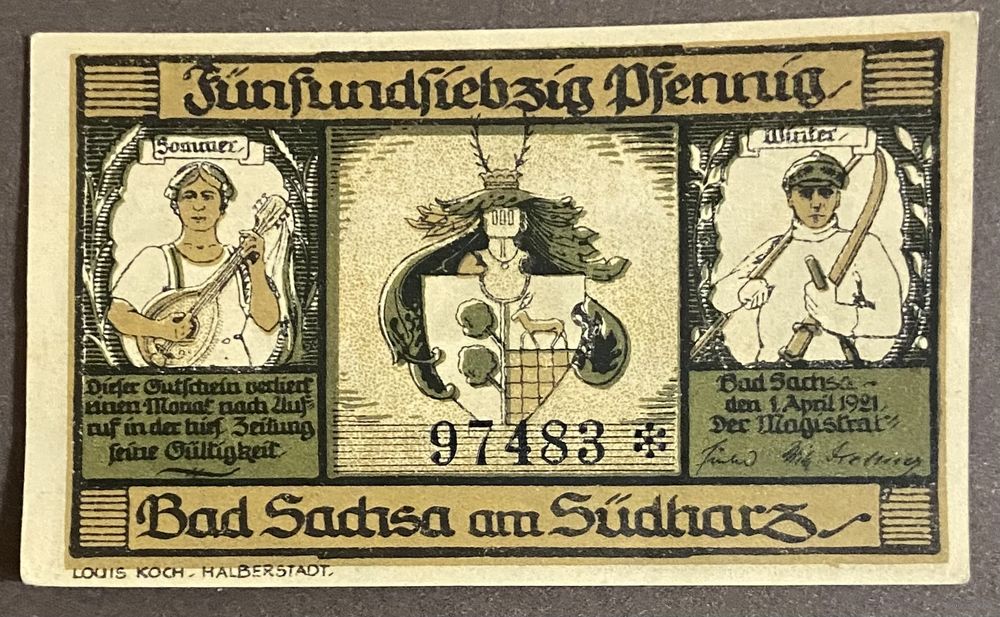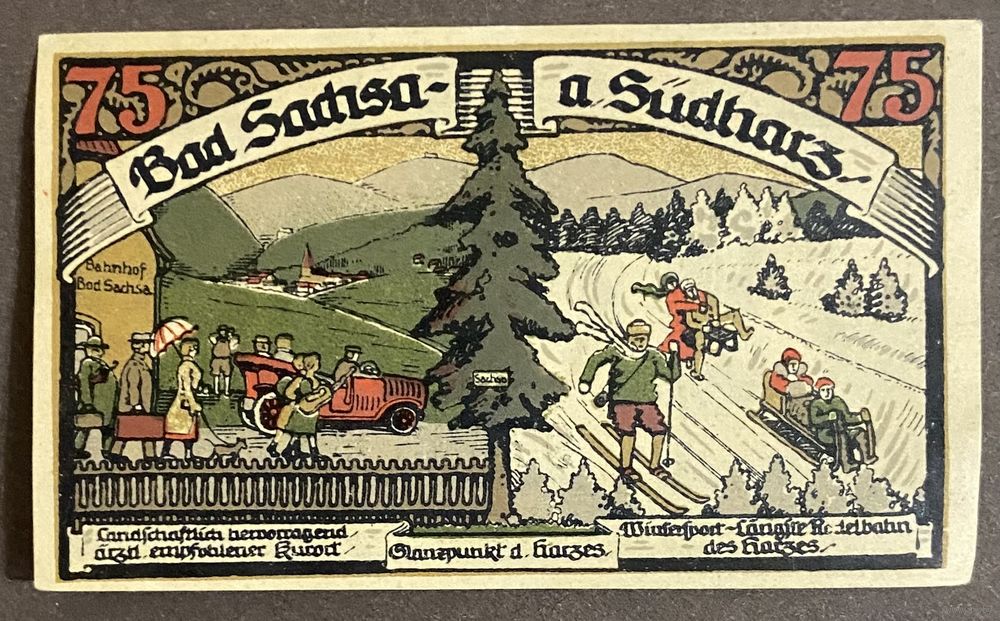 Нотгельд 75 пфеннигов 1921 год. Бад-Закса-ам-Зюдхарц,. Веймарская республика