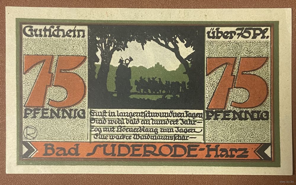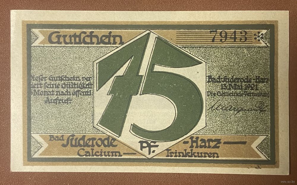 Нотгельд 75 пфеннигов 1921 год. Бад-Зудероде-Гарц. Веймарская республика