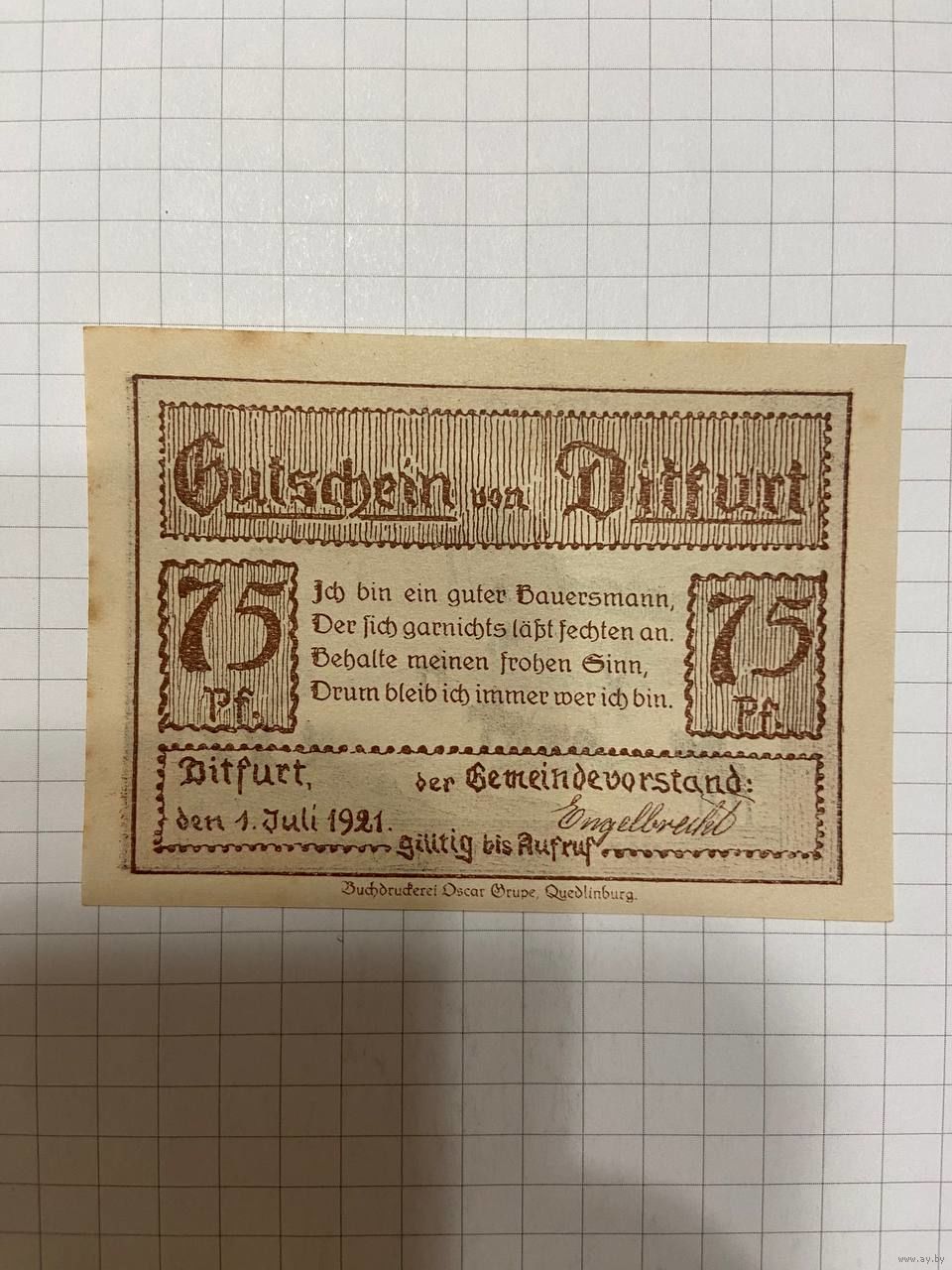 Нотгельд 75 пфеннигов Германия Дитфурт-0301