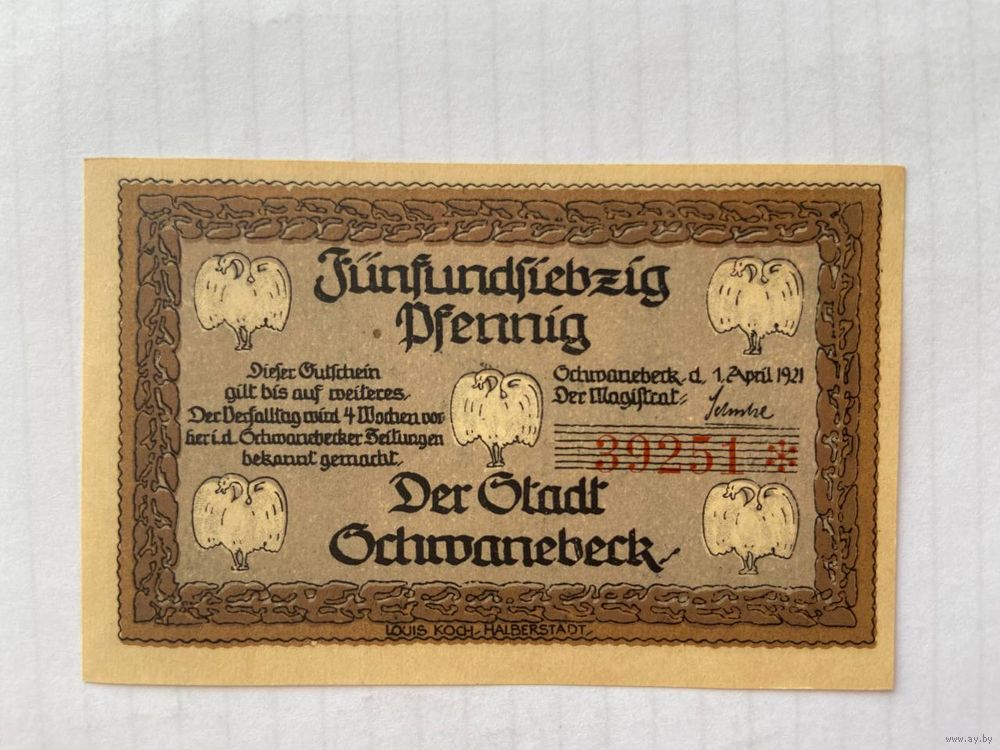Нотгельд 75 пфеннигов. Шванебек. Веймарская республика - 04