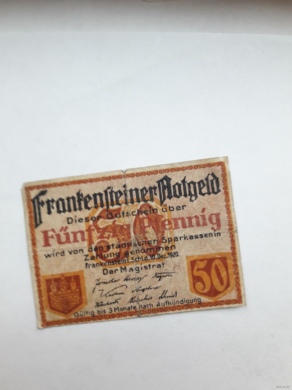 Нотгельд Германия 50 пф.Франкенштейн ( совр.Польша г Зомбковице Слепска)