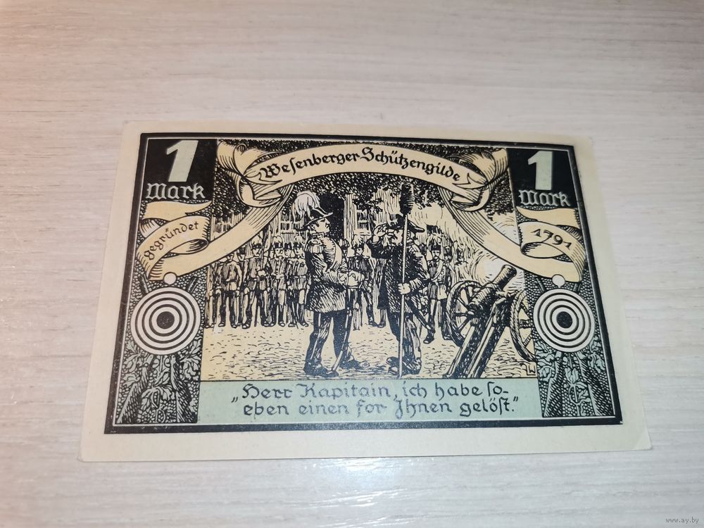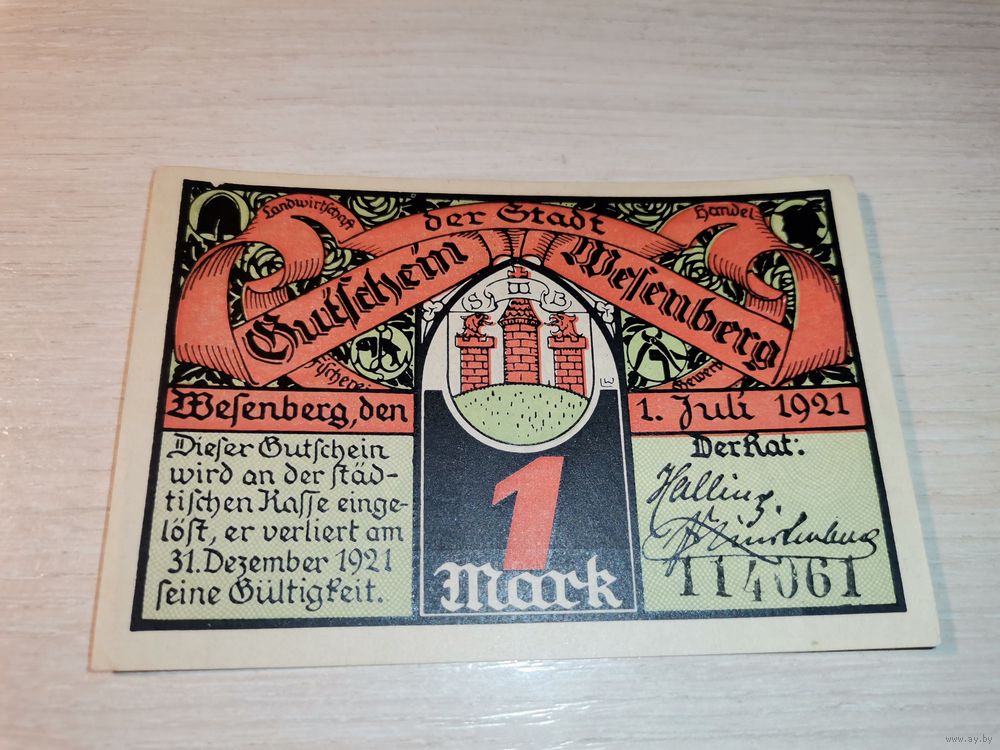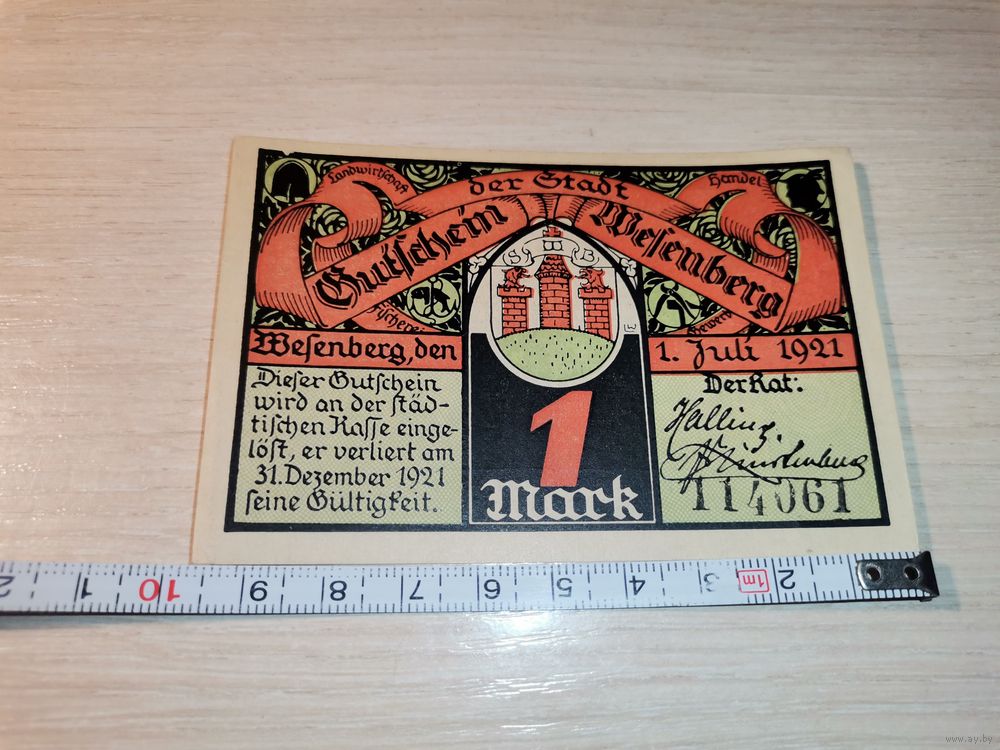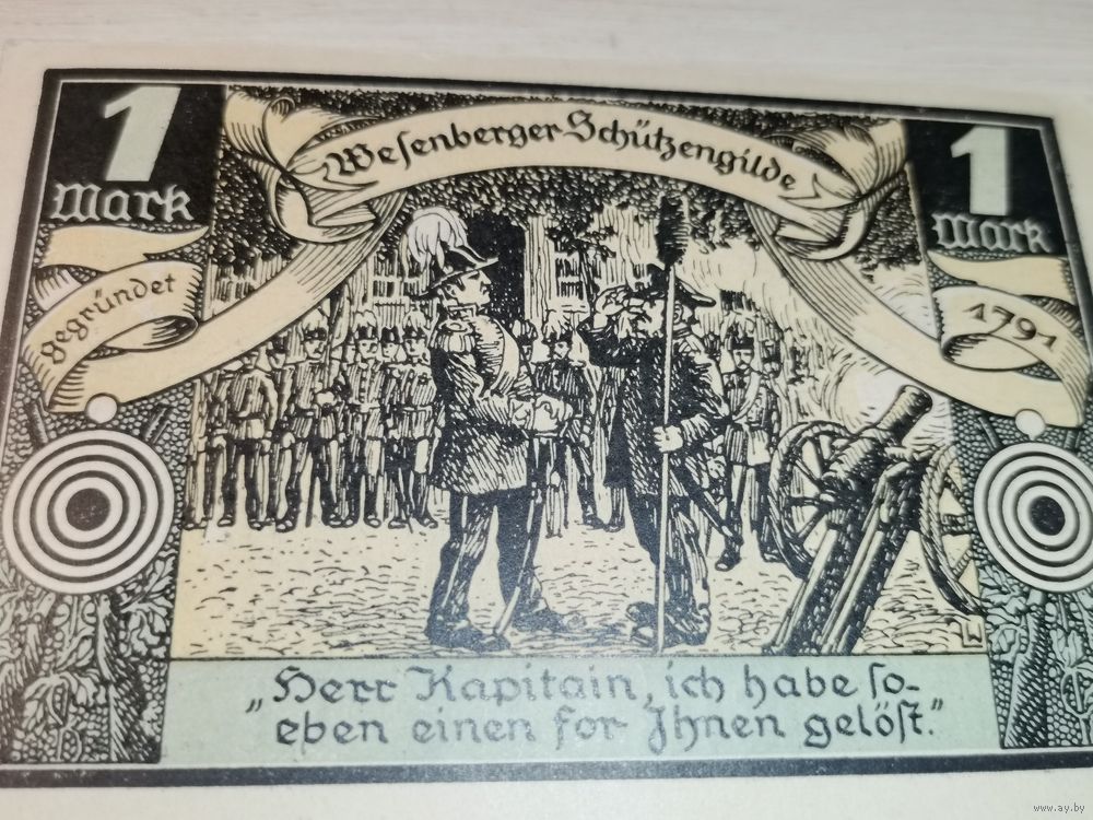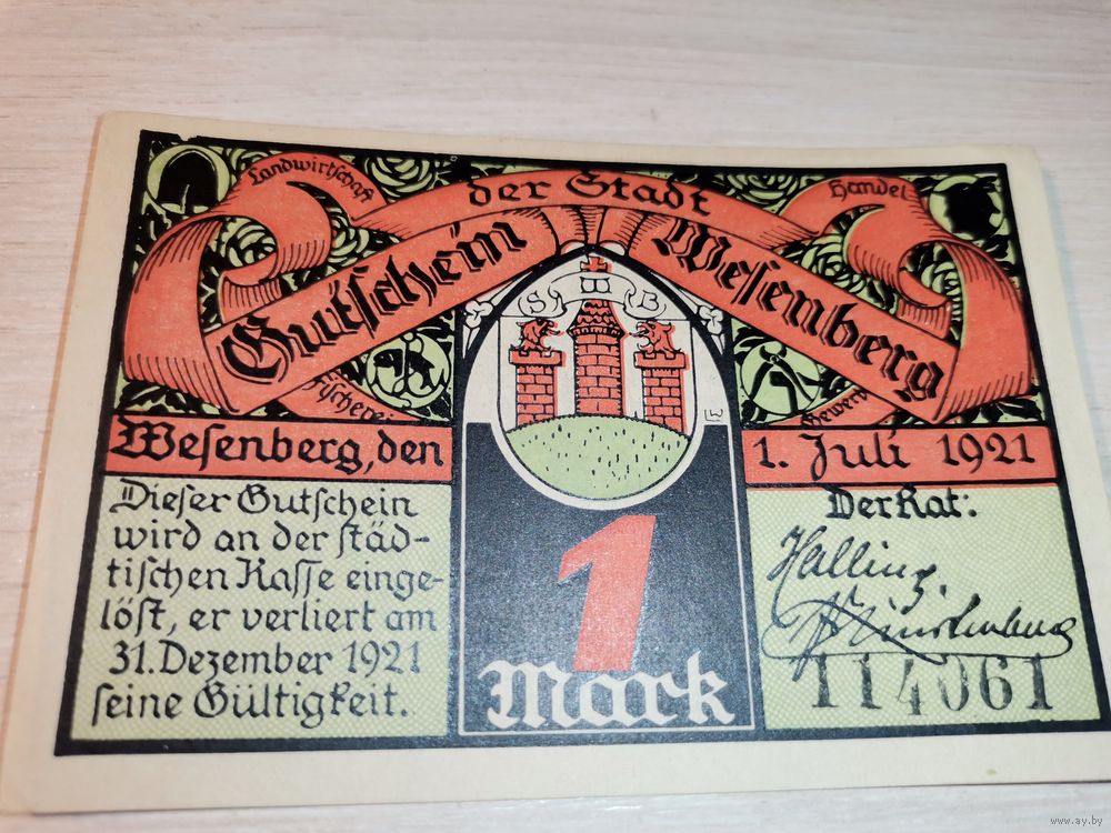 Нотгельд номиналом 1 марка , 1921 года, город Весенберг, Германия.