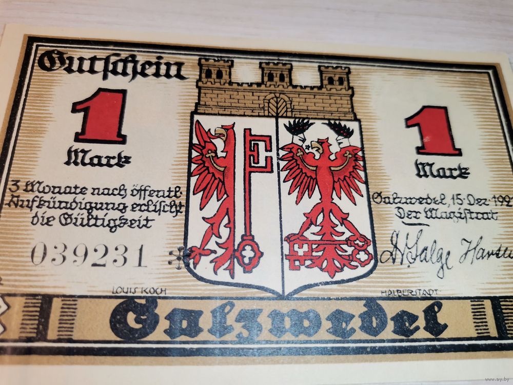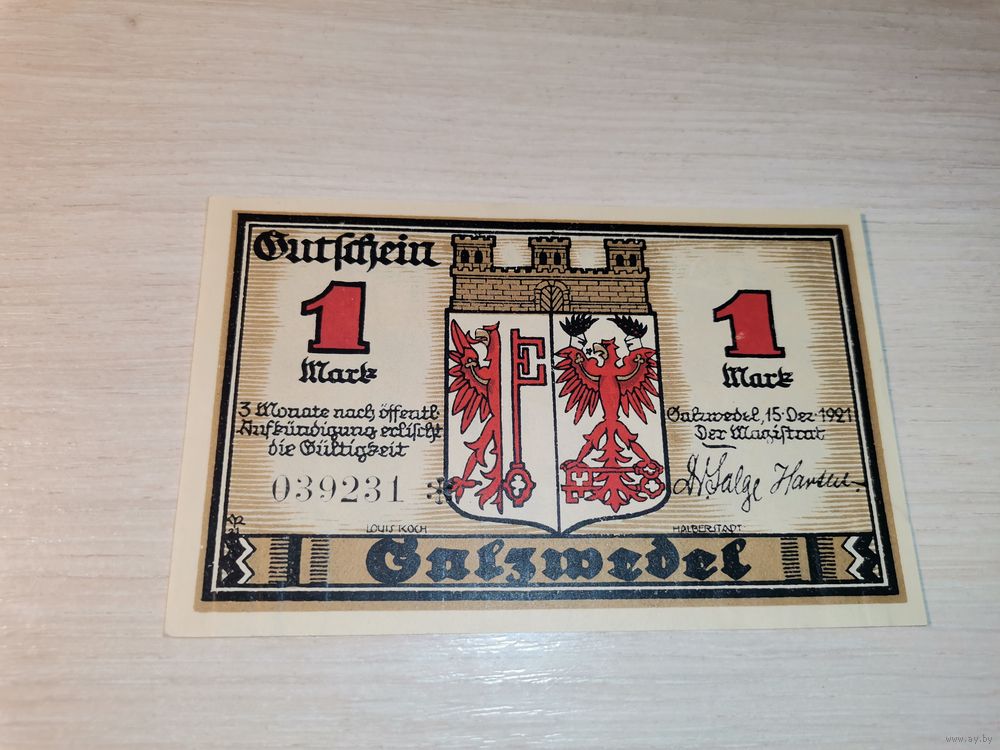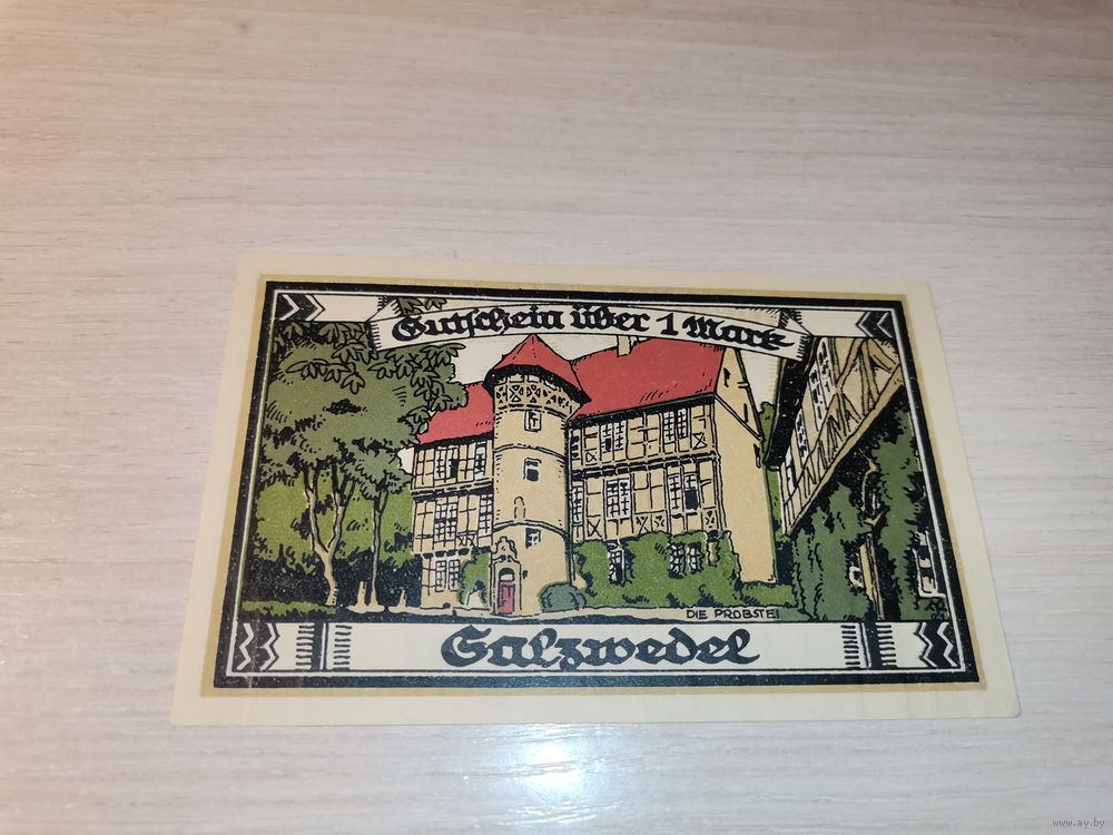 Нотгельд номиналом 1 марка , 1921 года, город Зальцведель, Германия.