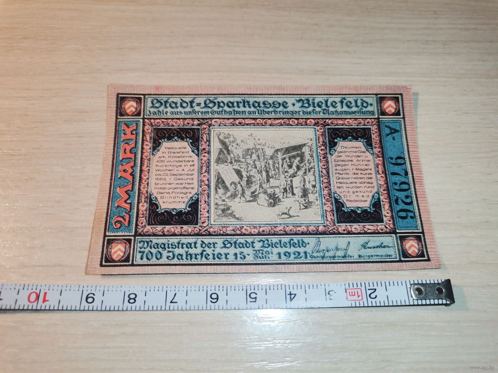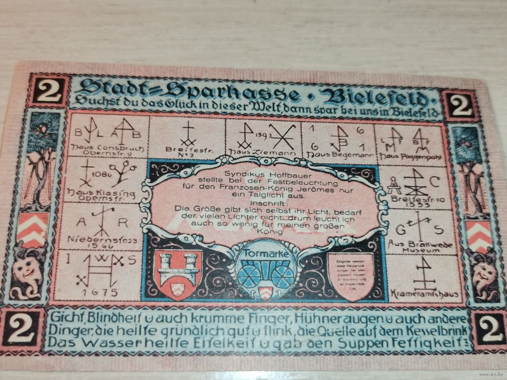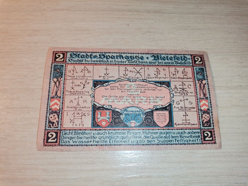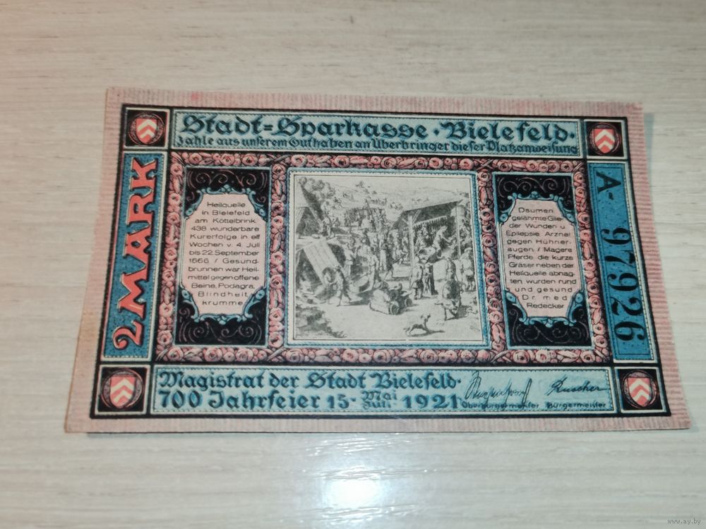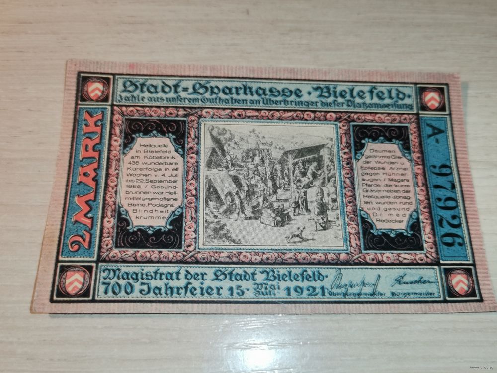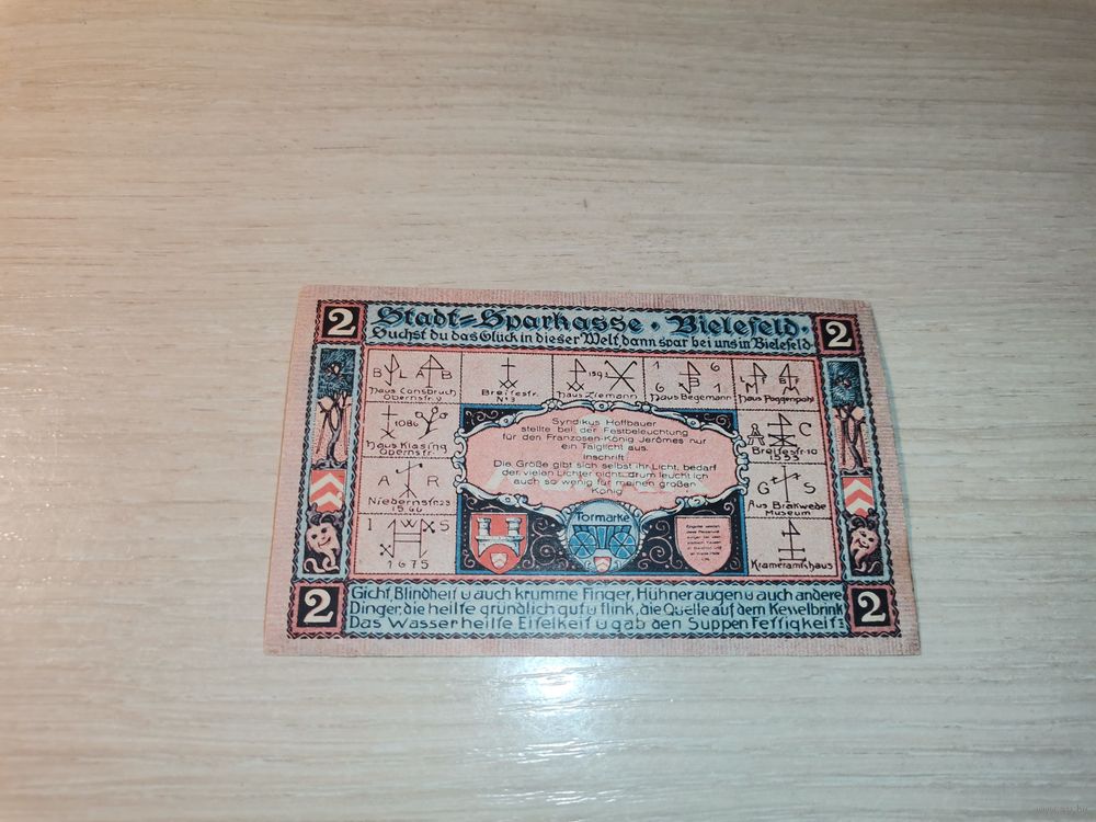 Нотгельд номиналом 2 марки , 1921 года, город Билефельд, Германия.
