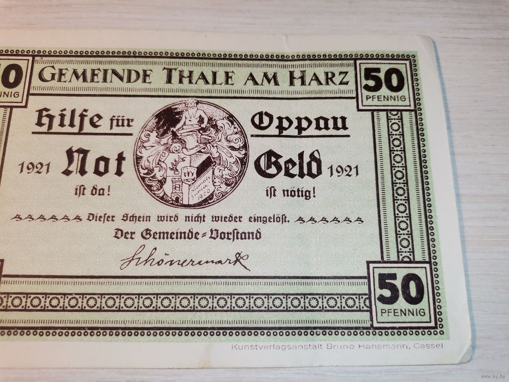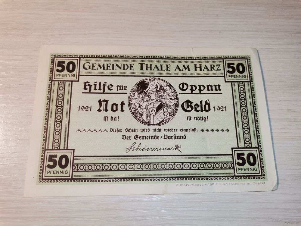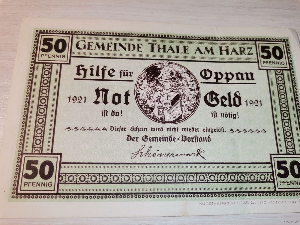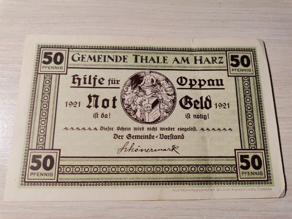 Нотгельд номиналом 50 пфениннгов , 1921 года, город Тале, Германия.