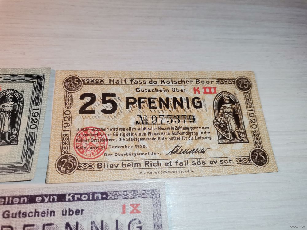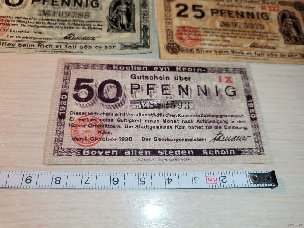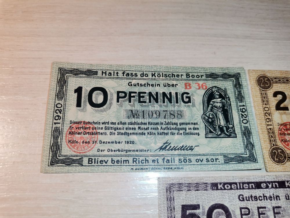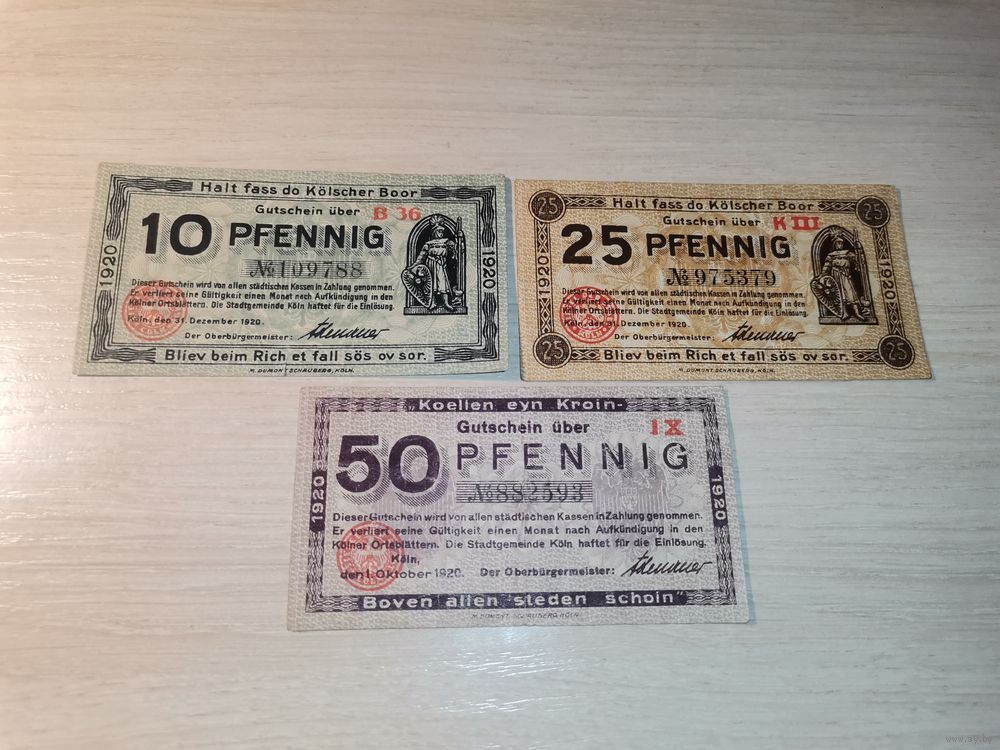 Нотгельды номиналом 10-25-50 пфениннгов, 1920 года, Кёльн, Германия.