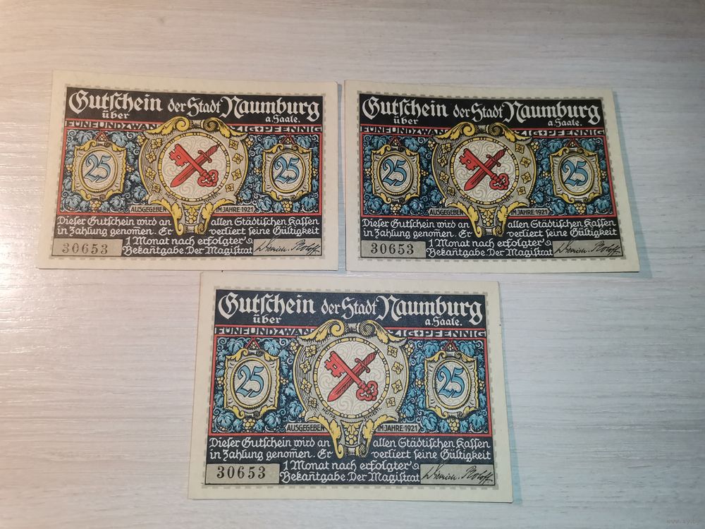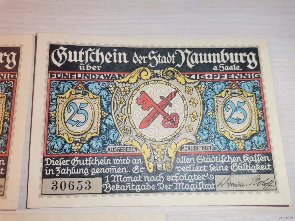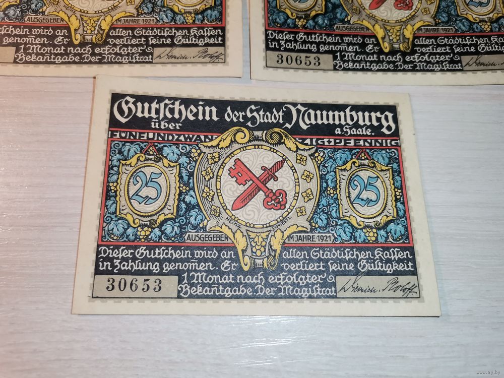 Нотгельды номиналом 25 пфеннингов 1921 года,провинция Саксония, город Наумбург-на-Заале, Германия.