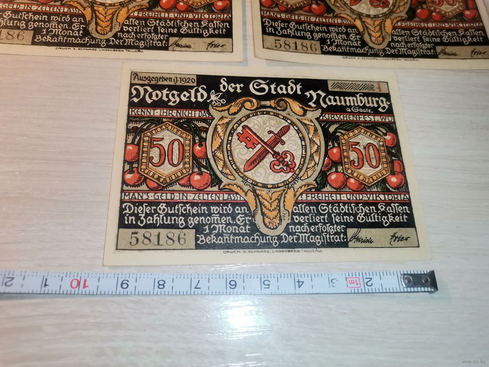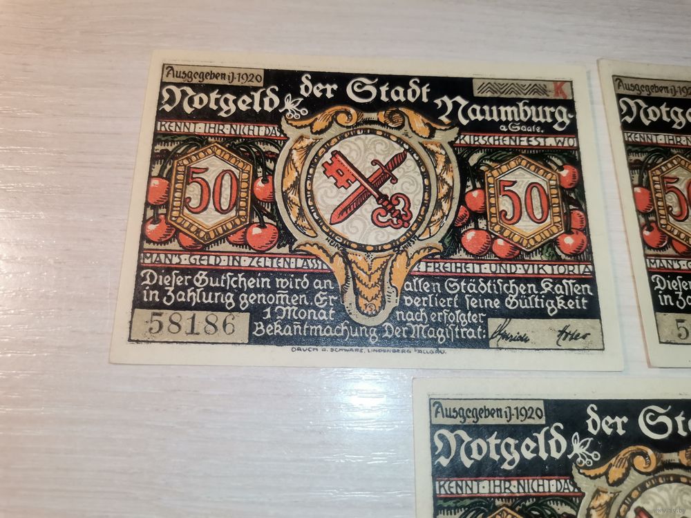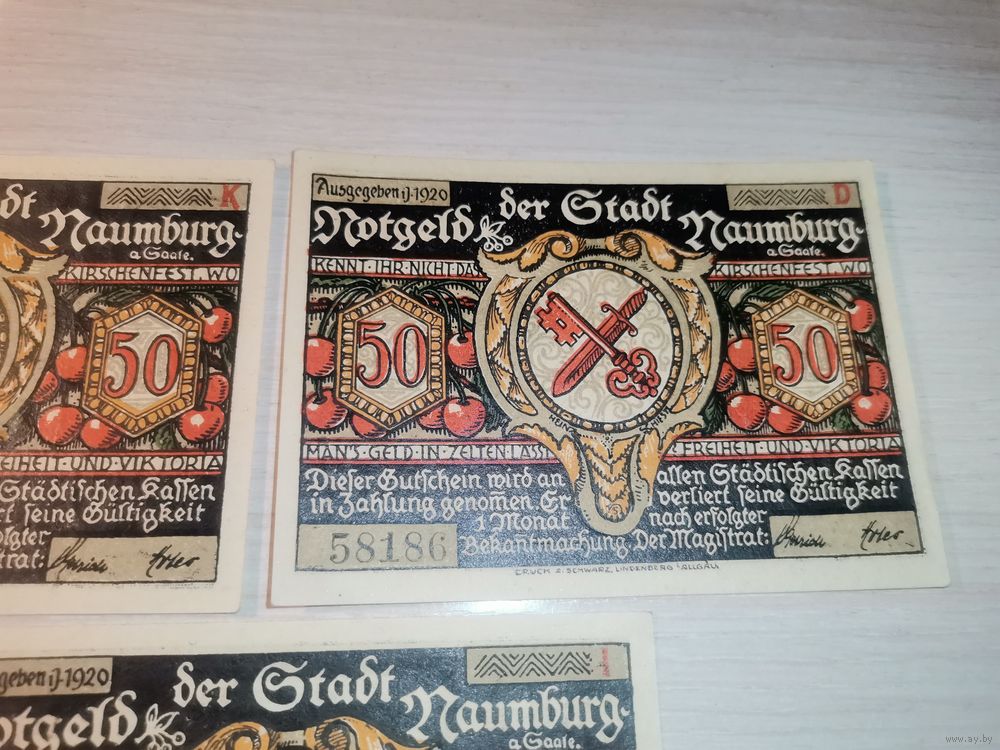Нотгельды номиналом 50 пфениннгов , 1920 года, город Наумбург, Германия.