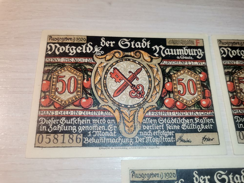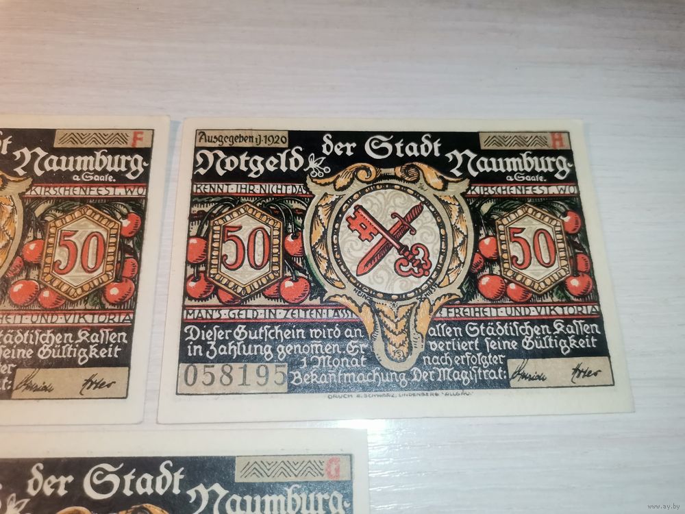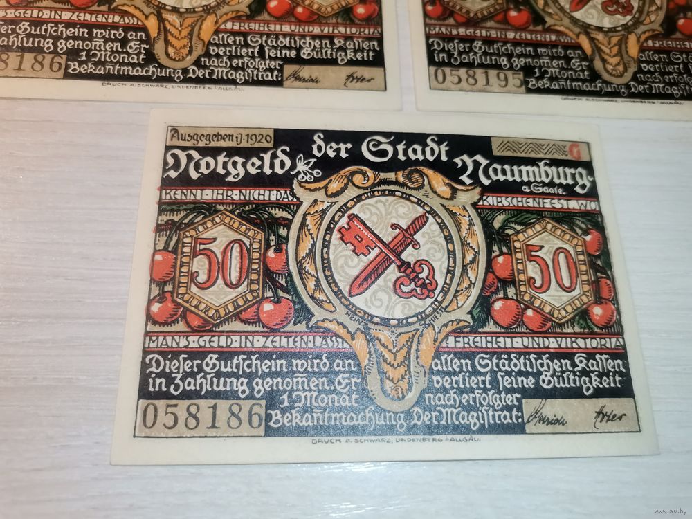 Нотгельды номиналом 50 пфениннгов , 1920 года, город Наумбург, Германия.