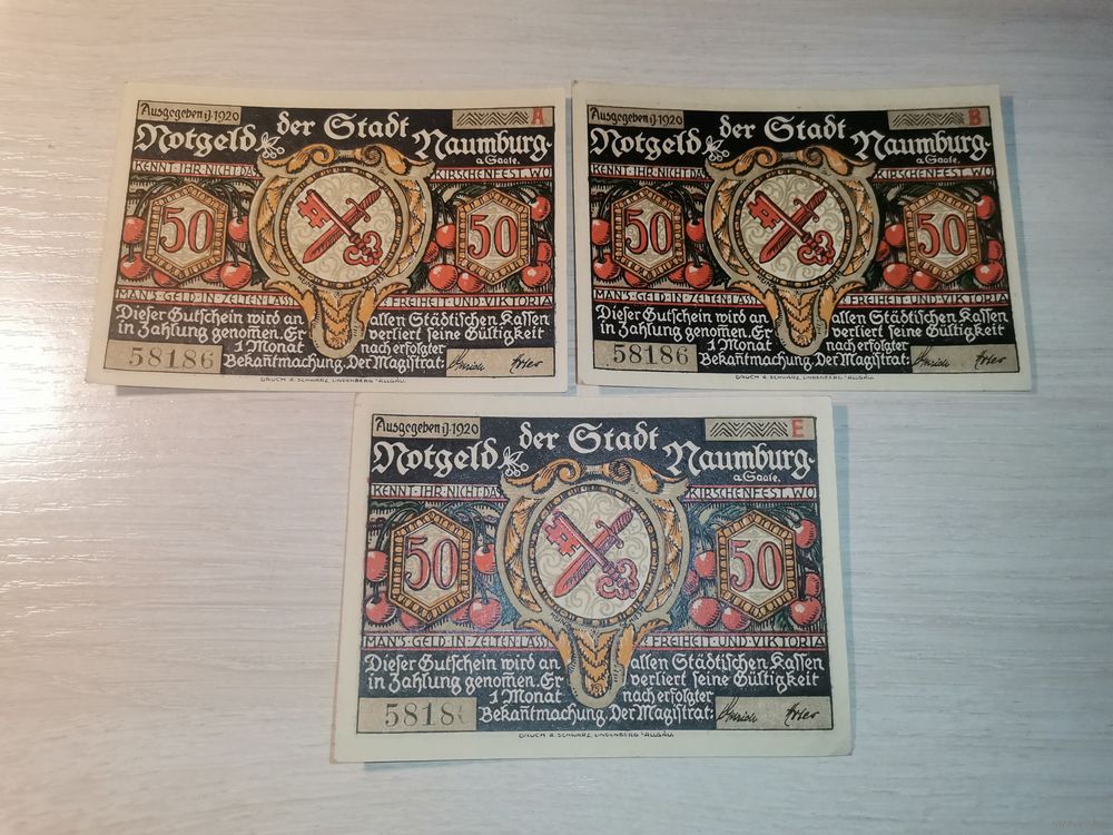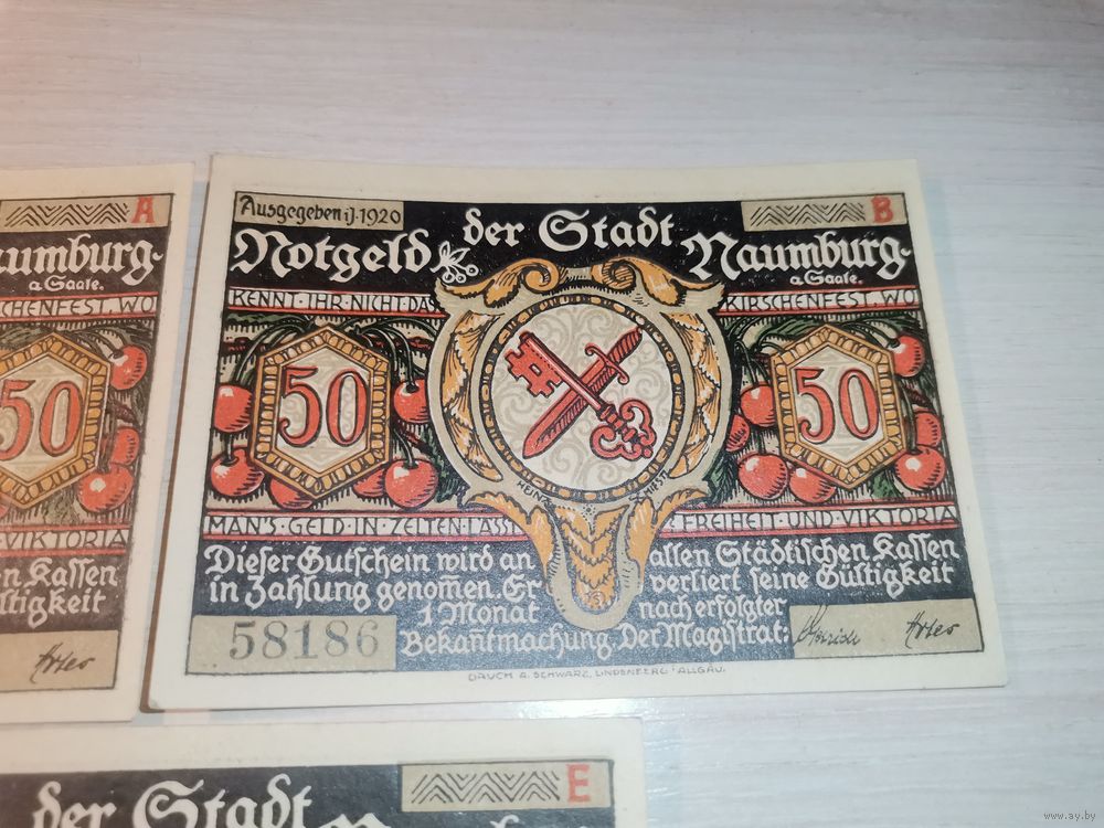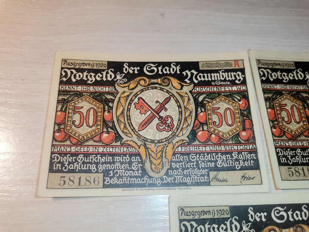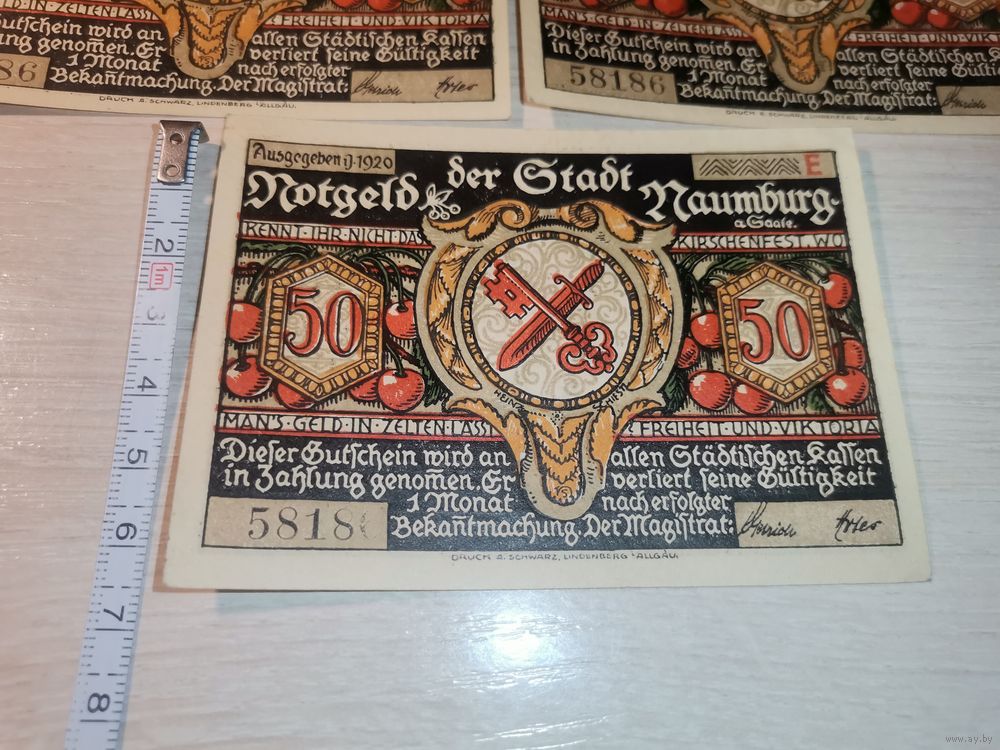Нотгельды номиналом 50 пфеннингов 1920 года,провинция Саксония, город Наумбург-на-Заале, Германия.
