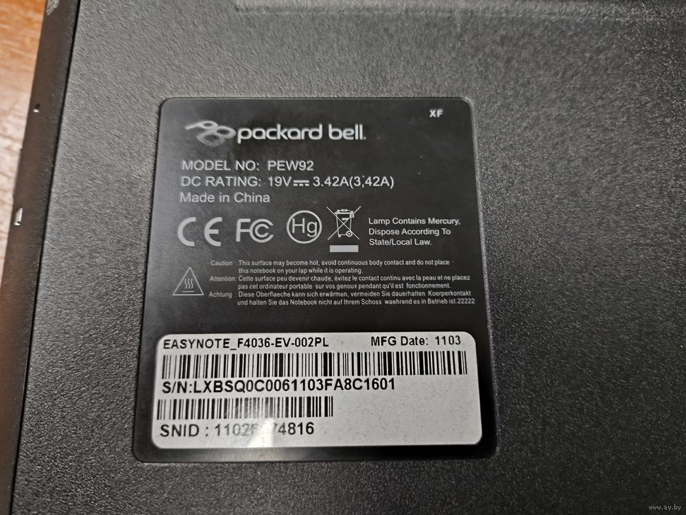 | CPU925(2.3ГГц, RAM4ГБ DDR3/ HDD 120Гб Kingston работает АКБ | |