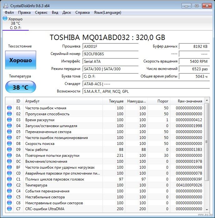 Disk : TOSHIBA MQ01ABD032 : 320,0 GB