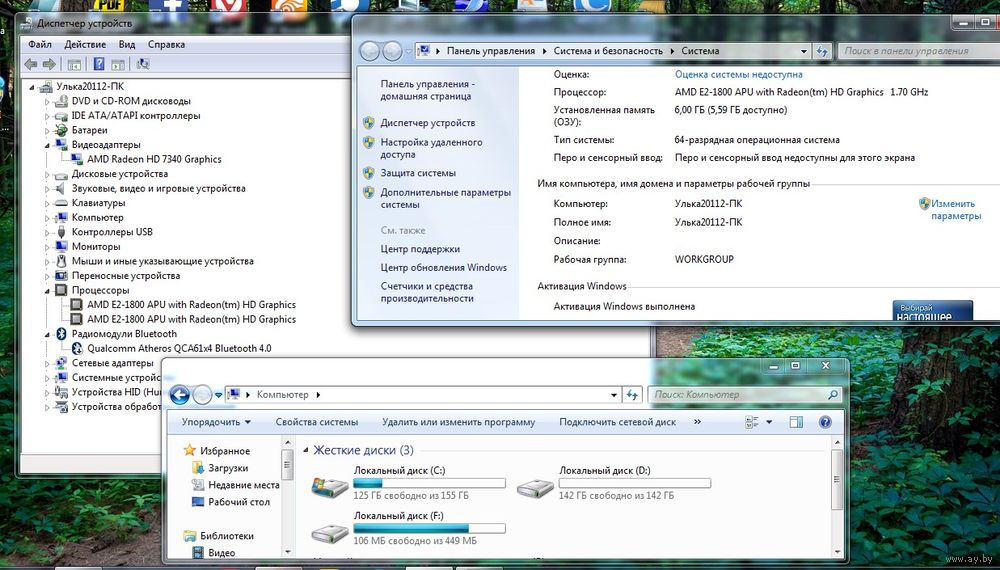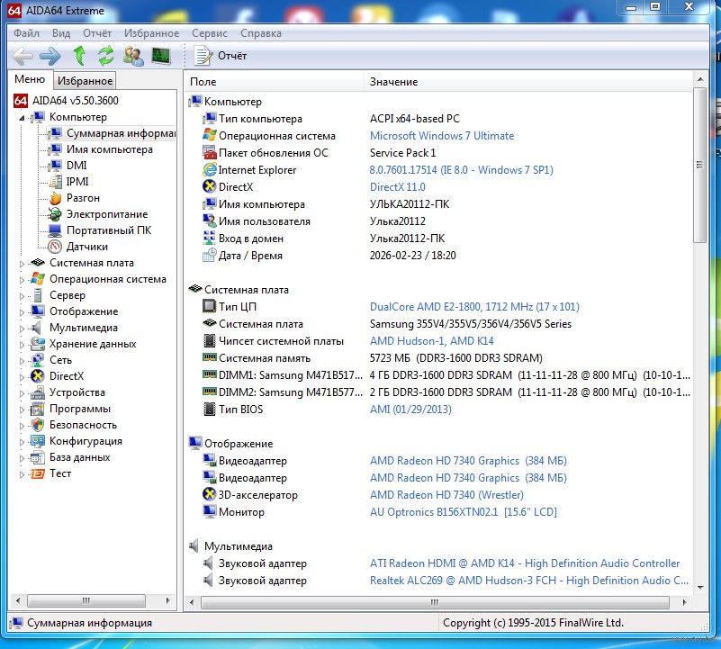 Процессор : AMD E2-1800 APU with Radeon(tm) HD Graphics
