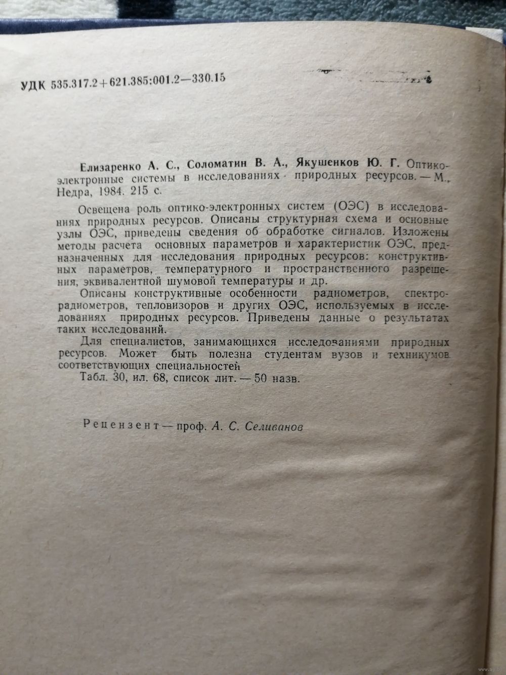 Описаны конструктивные особенности радиометров, спектро-радиометров, тепловизоров и других ОЭС, используемых в исследованиях природных ресурсов. Приведены данные о результатах таких исследований.
