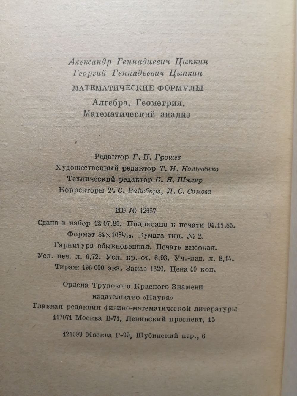 | Автор | А. Г. Цыпкин, Г. Г. Цыпкин |