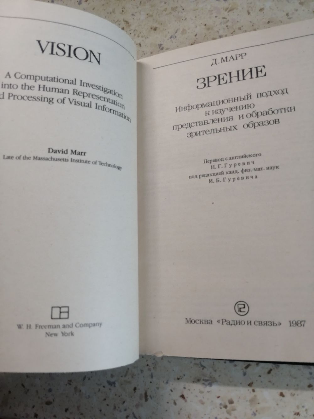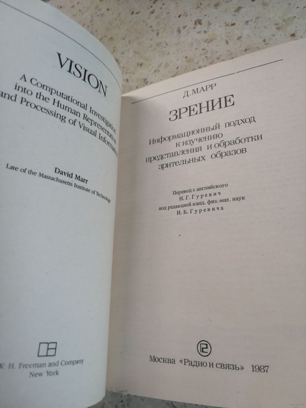 Книга посвящена информационной теории зрения Д. Марра, получившей в настоящее время широкую известность, но до сих пор на русском языке не излагавшейся. Суть теории Марра состоит в том, что в основе зрительного восприятия лежат процессы сбора, представления, обработки и распознавания информации, отражающей свойства наблюдаемого человеком реального мира. Приводятся методологические предпосылки, описание используемого информационного подхода, структура, предлагаемая для представления процесса зрительного восприятия в целом, и путь, который привел к ее формированию. Основное содержание книги составляет информационный анализ феномена зрения человека, а именно способы построения вывода (алгоритмов), позволяющего по структуре изображения судить о структуре реального мира, а также обсуждение физических ограничений и допущений, обеспечивающих возможность построения такого вывода. Значительное внимание уделяется иерархии представлений зрительной информации, способам формализации описаний изображения и элементам, из которых они могут и должны строиться,- признакам, стереозрению, использованию движения для восстановления трехмерной структуры реальной сцены по последовательности изображений и использованию результатов всех связанных со зрительным восприятием процессов для приведения изображений к виду, удобному для распознавания, и реализации последнего. Информационная теория зрения развивается в книге при сопоставлении и соединении тезисов автора с известными данными по психофизике и нейрофизиологии зрительной системы человека и методами обработки информации, используемыми в автоматизированных системах обработки и распознавания изображений.