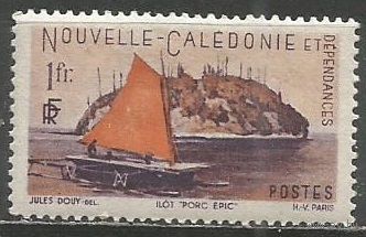 Новая Каледония. Местные мотивы. Остров. Яхта. 1948г. Mi#332.