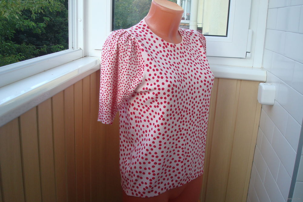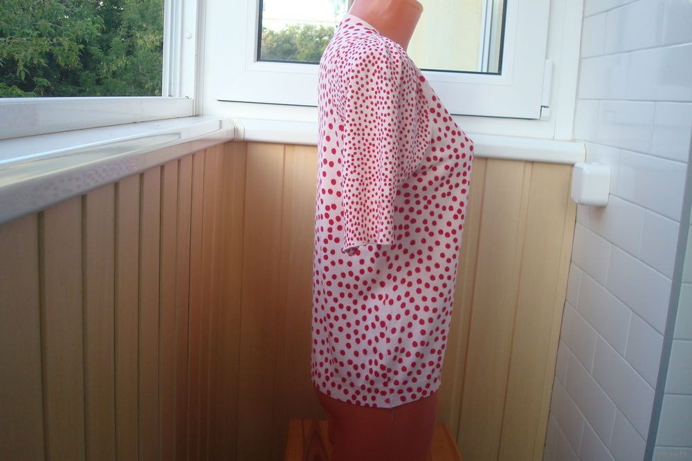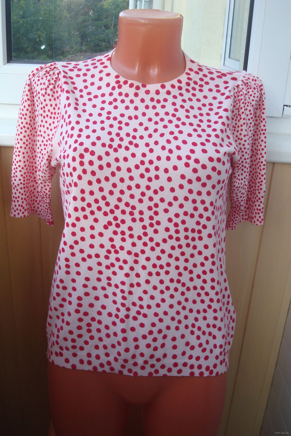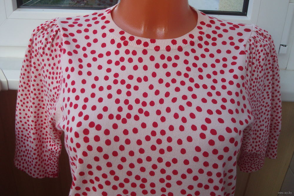 НОВАЯ фирменная кофта джемпер в горошек 44-46-48 р-р. Интересная расцветка кофточки: на светло-розовом фоне красный горошек, причём мелкий горошек на рукавчиках, а горошек побольше на полочке и спинке.