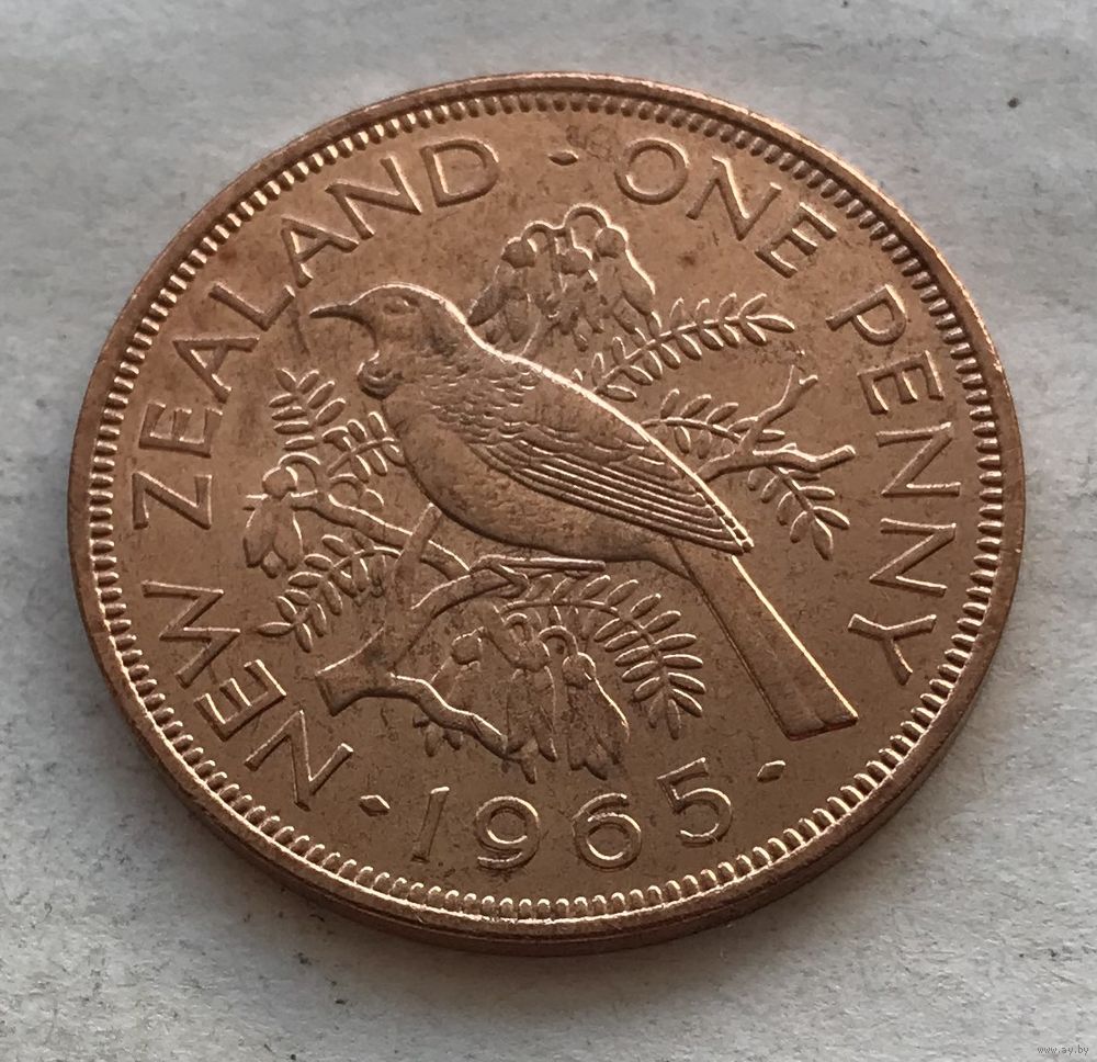 Новая Зеландия 1 пенни 1965 Новозеландский туи Елизавета II - UNC, последний год чекана!